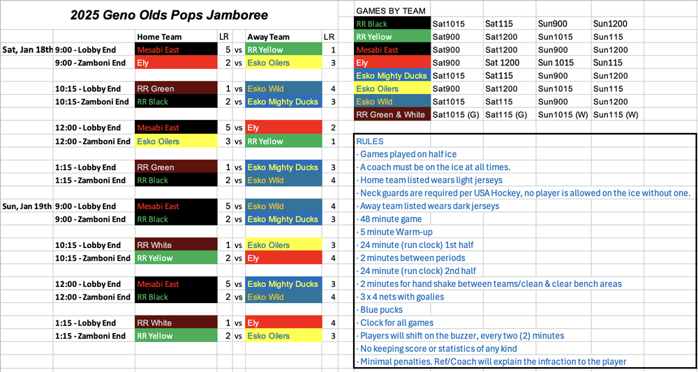 Join us in Hoyt Lakes, MN on Sat, Jan 18th & Sun, Jan 19th, 2025, at the Hoyt Lakes Arena at 102 Kennedy Memorial Dr, Hoyt Lakes, MN 55750 for a fun-filled weekend of "Pops", now called Mini-Mites for those "old school". This Jamboree is named in honor of the memory of long-time Aurora-Hoyt Lakes/Mesabi East hockey announcer Geno Olds.